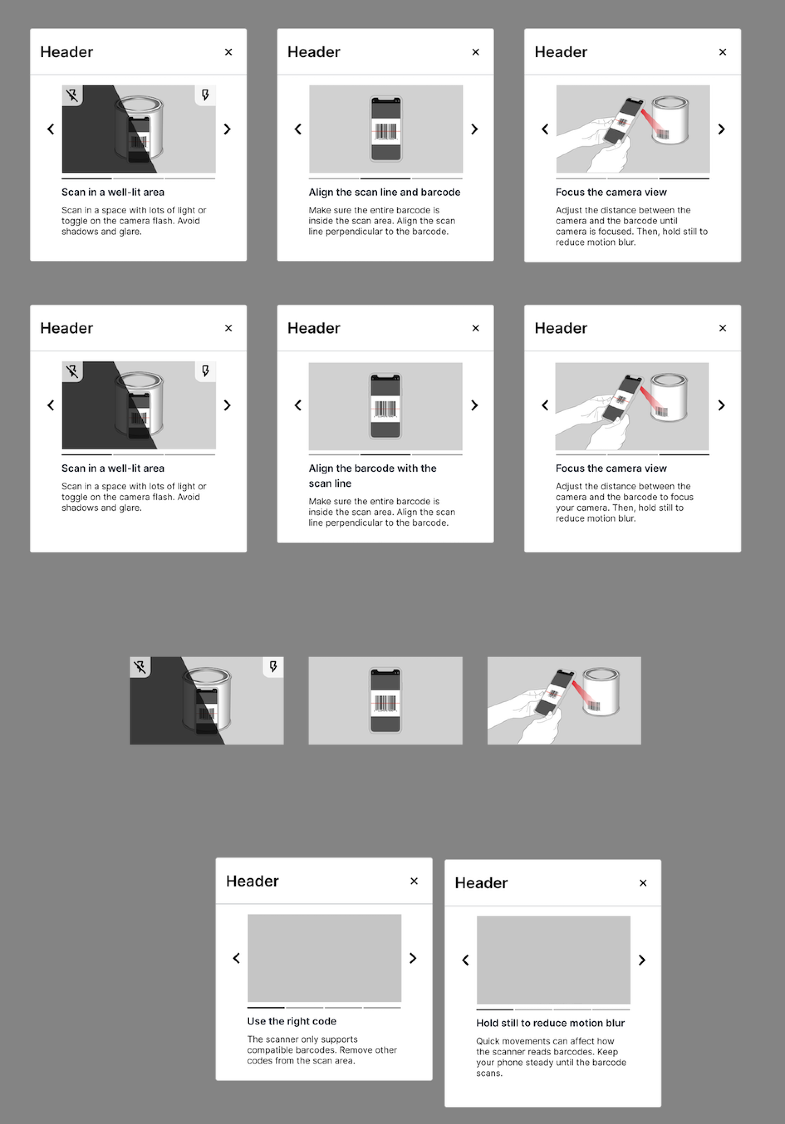 I conducted discovery research on how various e-commerce apps integrate barcode scanners into their product search experiences. I focused on examining the UI of the scanner screens, noting how different apps present help tips and information to guide users. I also explored how these apps handle error messages and what the user experience looks like after a successful barcode match. By analyzing these elements across multiple apps, I gained valuable insights into best practices for designing an intuitive and user-friendly barcode scanning experience.
